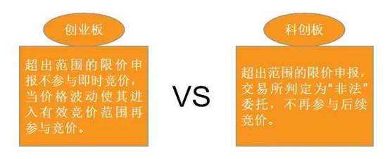 而且需要投資者注意的是,在創(chuàng)業(yè)板對于超出限價申報范圍的委托不參與即時競價,但會存入系統(tǒng)內(nèi)直至進入有效價格范圍再進行交易,而科創(chuàng)板超出限價申報范圍的委托直接作廢單處理。