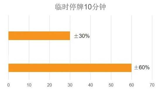 新股無漲跌幅限制期間,新增盤中臨時停牌機制,當新股漲跌幅首次達到30%、60%時,臨時停牌10分鐘。
